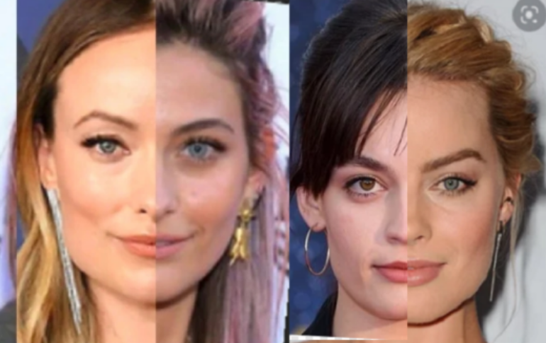 On the left is Olivia Wilde paired with Michael Jackson's daughter, Paris. On the right Emma Mackey is Paired with Margot Robbie. Despite the fact that many people have said Emma and Margot look like twins, their alignment is slightly off and their ears are not a match. Perhaps this means that they really are identical twins (more on that a bit later). The bottom of Margot's chin is longer than Emma's, and you might have noticed this chin discrepancy in the previous photos. The reason this happens is because their heads are positioned at different angles (a phenomenon known as "focal point").